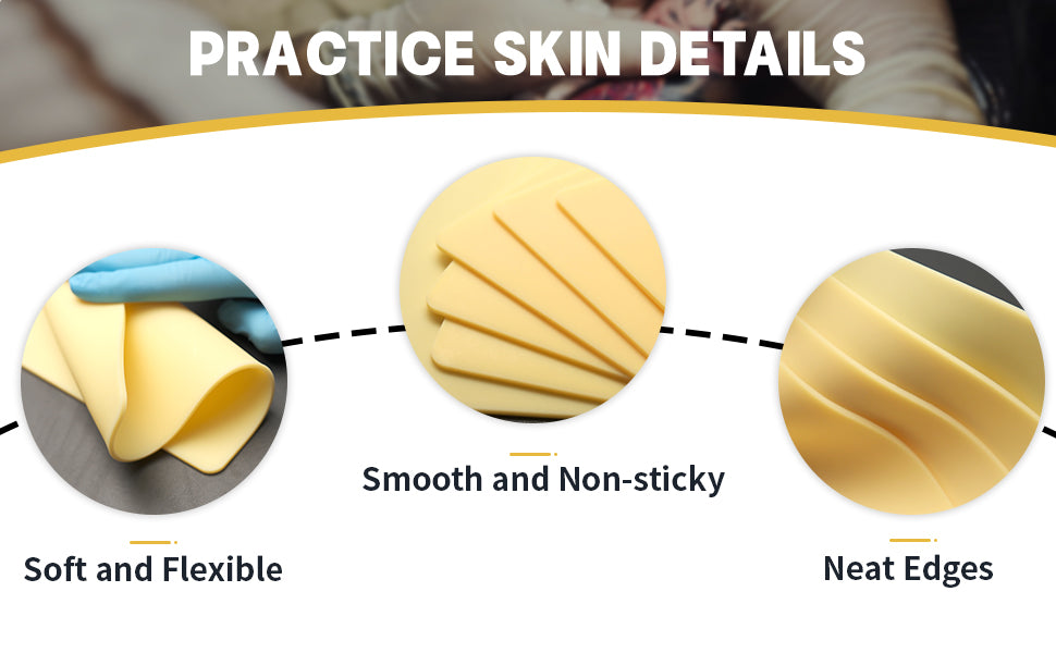 · 【SKIN-LIKE MATERIAL】Tattoo practice skin is made of silicone texture. Soft and elastic, touch like real skin, can be bent and used to simulate the curvature of the skin. Helps to recreate the tattoo experience on real skin. Individually packaged, double-layer blank.