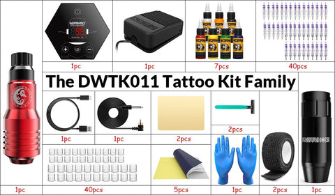 DWTK011 tattoo kit comes with 20pcs liner needle cartridges and 20pcs shader needle cartridges. Tattoo needles marked with “RL” are used for doing lines, marked with “RM” are used for shading and color fill. Needle size can be found on the package. For practicing on fake skin, it can be reused. Each needle single packed.