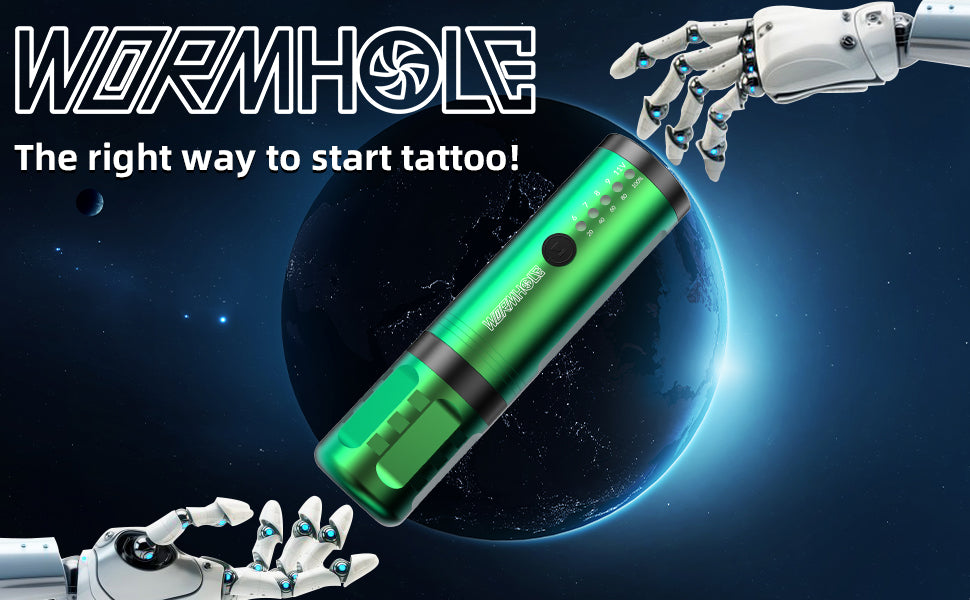 1. This tattoo pen kit comes with a wireless tattoo machine pen. The appearance of a wireless tattoo machine is exclusively designed by Wormhole Tattoo.