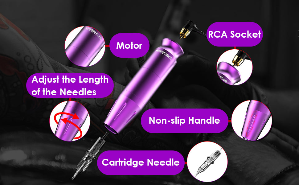 5. It’s suggested to choose Wormhole Tattoo Cartridge Needles when using this tattoo pen for a better usage effect.